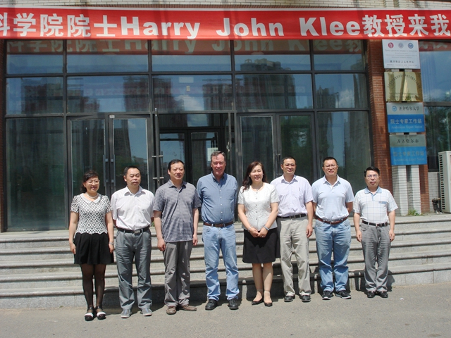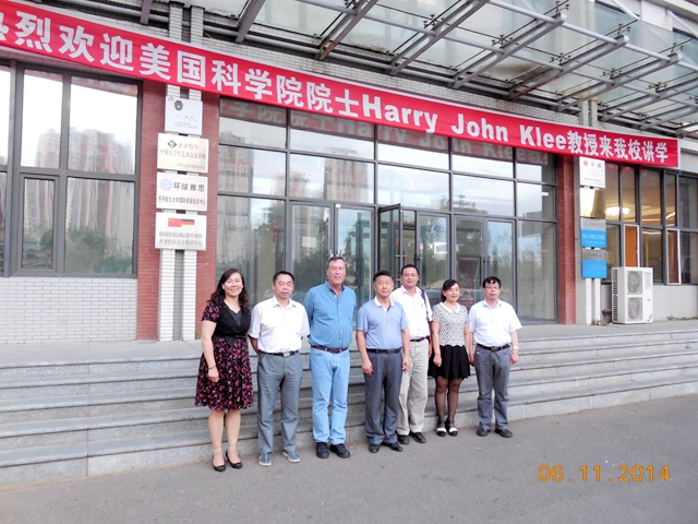 应LETOU官网邀请,美国科学院院士、佛罗里达大学教授Harry John Klee博士于2013年6月11-12日来LETOU官网进行学术交流。美国佛罗里达大学终身教授、“龙江学者”陈思学博士,黑龙江大学生命科学学院院长平文祥教授、生物工程系主任赵凯教授等陪同Harry 院士讲学。LETOU官网校长马立群教授亲切会见了Harry 院士一行,科技处处长郑永杰、财务处处长沙伟以及生命科学与农林学院领导参加了会见。