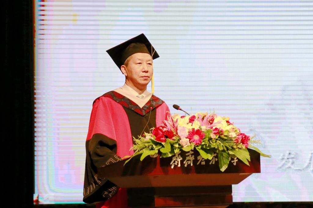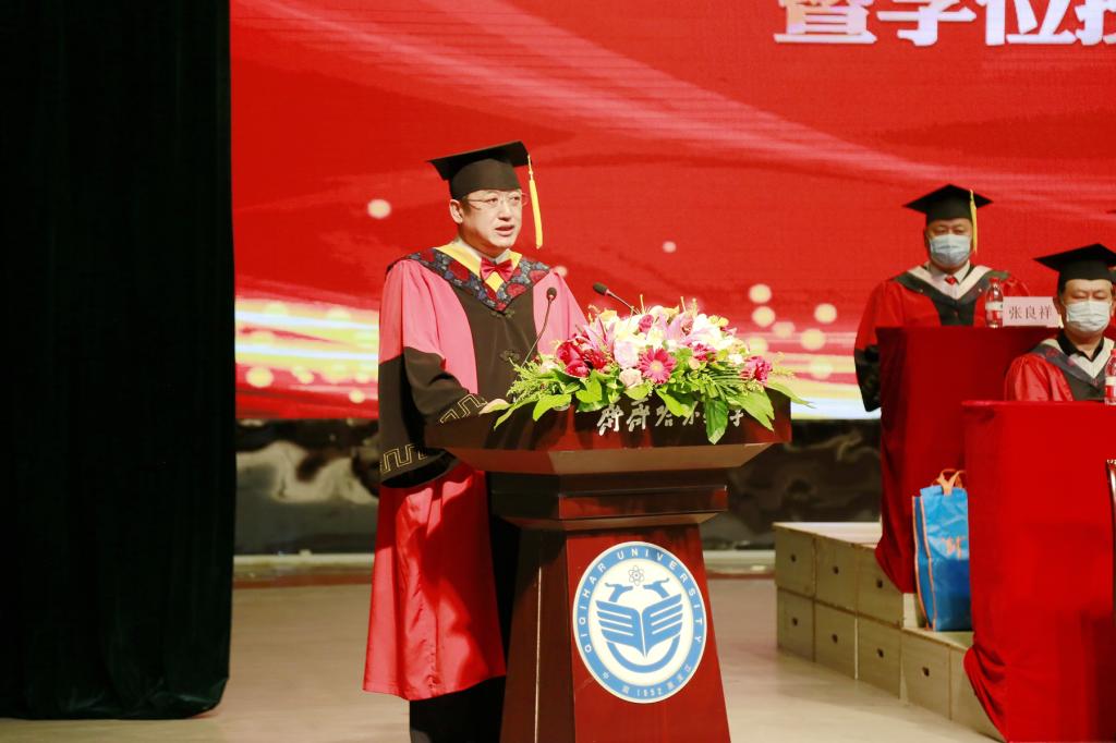 优秀青年教师代表、省青年教学名师、生命科学与农林学院副院长李珊珊教授代表学校广大教师为学成出师的齐大学子们送上了真挚的祝福,并深切叮嘱他们在未来步入社会时要时刻热爱国家和工作,保持自身学习能力,正视困难和责任,永保斗志,奋斗不息,努力实现人生价值。