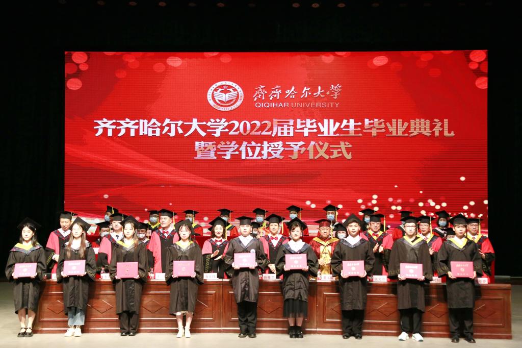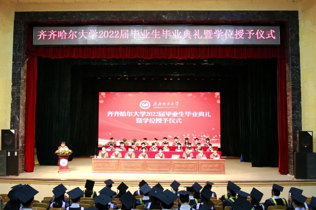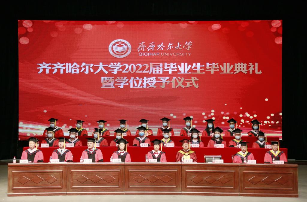 美丽的嫩江渊源流长,六月的齐大桃李芬芳。6月10日上午,学校以线上直播与线下典礼相结合的方式在文化宫隆重举行了2022届毕业典礼暨学位授予仪式。校领导陈桂芝、董玉庭、齐宏伟、张文治、王刚、丛喜权、张树军、李奇楠、陶佰睿出席典礼,学校学位评定委员会成员、教师及2022届优秀毕业生代表在现场参加了此次盛典。即将奔赴祖国各地的六千余名2022届毕业生在云端参加了毕业典礼,毕业典礼由副校长丛喜权主持。