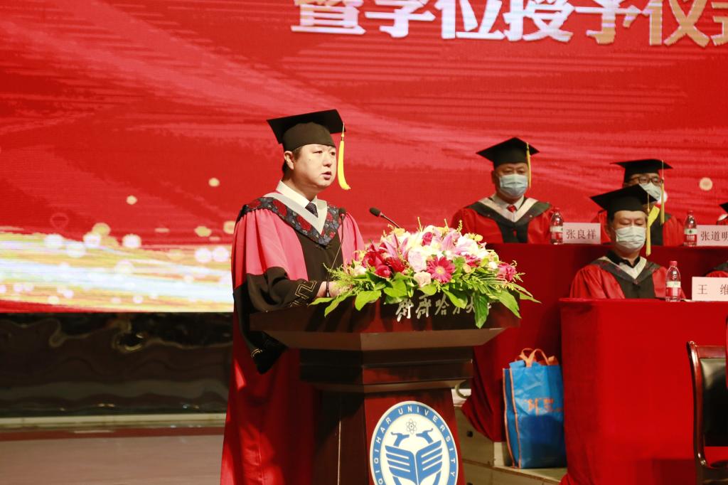 党委常委、副校长张树军教授宣读了关于授予2022届本科生、研究生、留学生学位的决定。