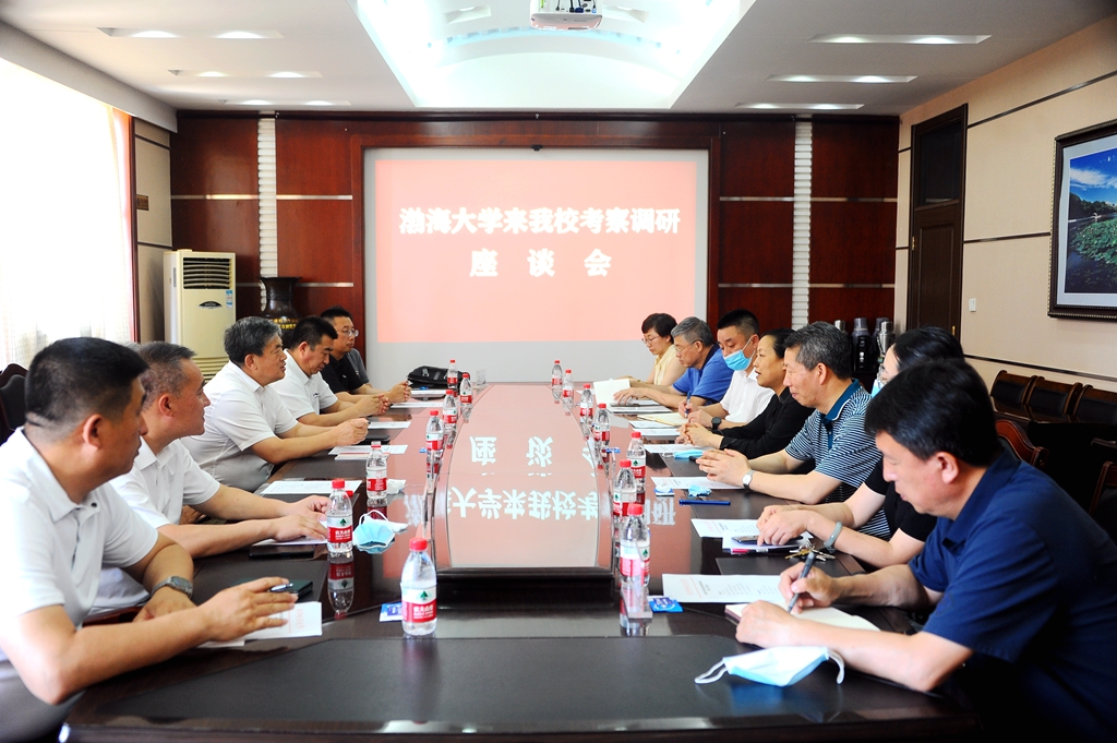 6月29日下午,渤海大学校长赵晖等一行7人来到LETOU官网考察调研。LETOU官网党委书记陈桂芝、副校长丛喜权以及学校办公室、教务处、科研处、国际交流合作处、文学与历史文化学院(新闻传播学院)等单位负责人在办公楼504会议室会见了赵晖一行。