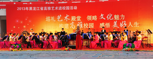 由教育部、文化部、财政部共同发起的高雅艺术进校园活动,于2006年启动,旨在提高大学生的文化艺术修养,加强校园文化建设,迄今已走过了8个春秋。为进一步贯彻落实党的十八大精神及《教育部文化部财政部关于高雅艺术进校园活动的指导意见》(教体艺〔2010〕4号),进一步加强大学生德育、美育和素质教育,丰富校园文化生活,培养学生良好的审美情趣和艺术素养,省教育厅、省文化厅、省财政厅决定从2013年6月起在我省开展“高雅艺术进校园”活动,组织省内优秀专业艺术院团和学校优秀艺术团赴全省高校进行演出,并联合下发了《关于开展高雅艺术进校园活动的实施意见》(黑教联〔2013〕37号)。