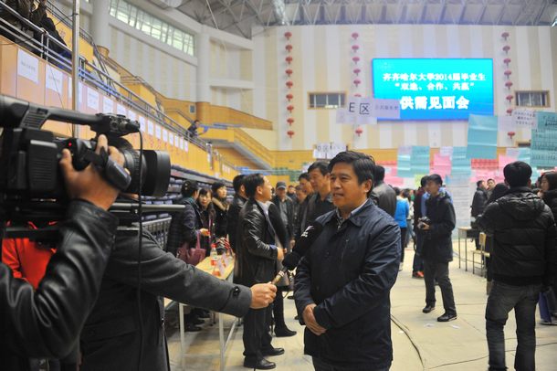 齐齐哈尔电视台、《齐齐哈尔日报》、齐齐哈尔新闻网等新闻媒体对本届“双选”会进行了现场采访、直播连线和热忱报道。常务副校长郑喜群接受了齐齐哈尔电视台《直播鹤城》记者的现场连线以及齐齐哈尔电视台《齐齐哈尔新闻》、《齐齐哈尔日报》、齐齐哈尔新闻网等媒体记者的现场采访,阐述了此次供需见面会的主要特点和就业形势以及LETOU官网促进学生就业的理念、举措和成效,产生了积极而广泛的社会影响。