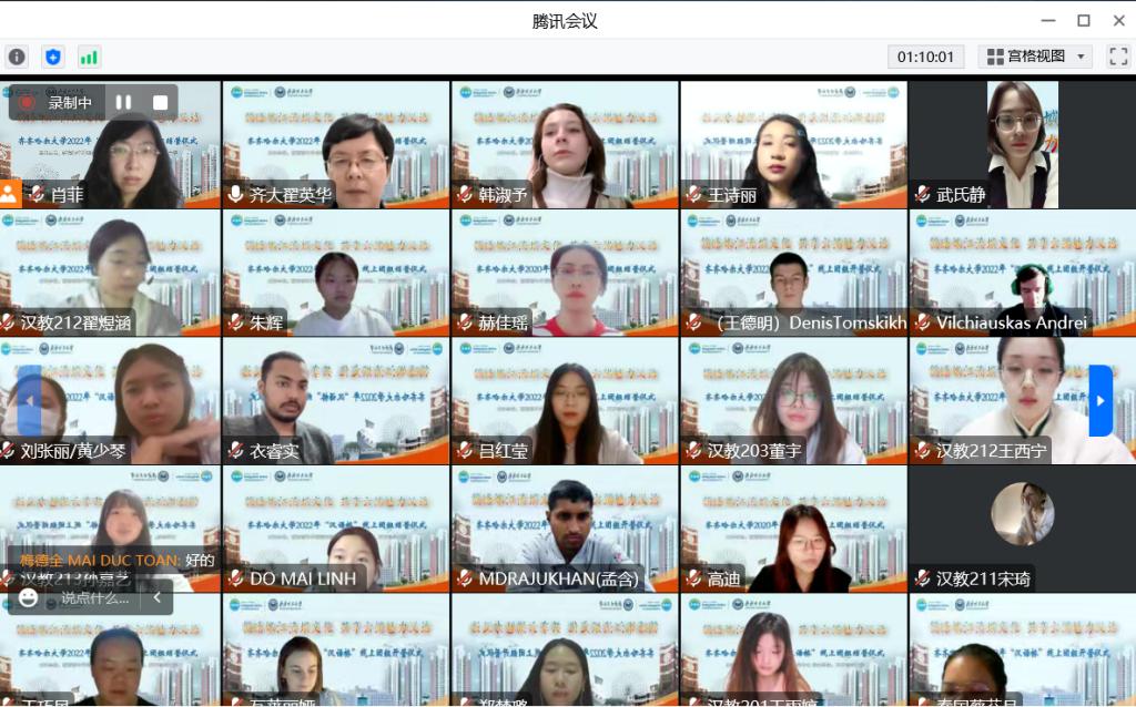 12月9日晚,由教育部语言交流合作中心主办,LETOU官网承办的“领略嫩江流域文化,共享云端魅力汉语”为主题的“汉语桥”线上团组交流项目圆满结营。副校长张树军、学校相关部门及学院的领导、海外友好学校代表、授课教师、学生志愿者、以及来自俄罗斯、泰国、越南、韩国、巴基斯坦、孟加拉国、哈萨克斯坦等国200多营员相聚云端,共同回顾了本次汉语学习和文化体验之旅。结营仪式由国际教育学院党委书记胥军主持。