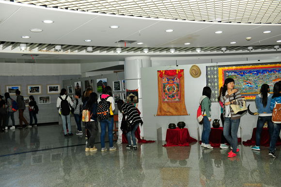展览厅内,老师、同学们一步一驻足,流连忘返于作品前,或揣摩、或品味、或欣赏,无不沉醉在独特的藏民族风情中。透过一幅幅的作品,大家真切感受到了西藏的大美与神奇,领略到了独特的藏民族文化和华夏一家亲的和谐风味。