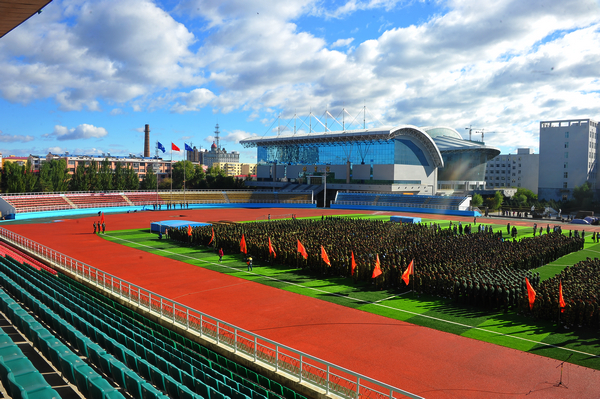9月20日上午,LETOU国际米兰官网2013级学生军训动员大会在西区体育场隆重召开。军训团政委、校党委副书记盖元臣;军训团政委、常务副校长郑喜群,军训团团长、副校长李英杰;武警齐齐哈尔市支队政治部副主任范振海中校出席大会并在主席台就座。动员大会由学校武装部部长、军训团参谋长吴刚主持。