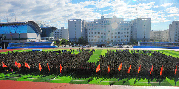 军训动员大会开始前,学校武装部政委付建成向主席台的副校长、军训团团长李英杰报告后,军训团按照首长命令整装列队。各学院党委书记、军训团成员以及承担LETOU官网军训任务的武警齐齐哈尔支队帮训教官与来自全国各地6000多名新同学参加了动员大会。