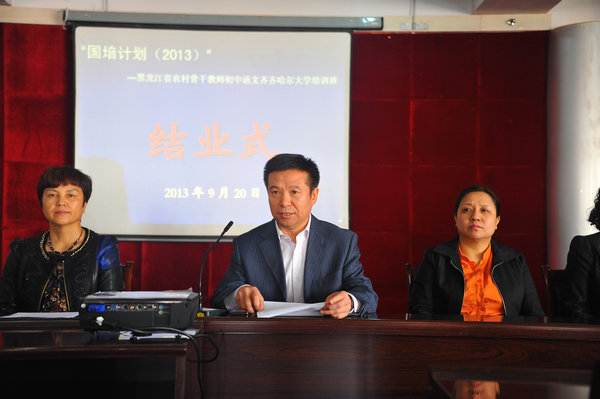 学员代表、佳木斯市汤源县黑金河中学齐铭发表了参加“国培计划(2013)”培训感言。她代表全体参训学员感谢学校领导对这次培训工作的高度重视与精心组织;感谢实施培训的各个学院的领导和老师付出的辛劳。在此次集中培训中,我们有机会聆听多位专家名师的讲座,领略专家名师的魅力与风采,让我们的教育理念由束缚状态下解放出来,使思想化茧为蛹、化蛹成蝶,让师者飞翔,并能够站在巨人的肩上思考语文教学的未来。这是一种心灵的震撼,是一次思想的启迪,更是一种永久的回味,让我们终生铭记。我们会把这里的所见、所闻、所学、所思带给我们的教育同行们,带着微笑和欣赏走进课堂、走近学生,借“国培”的东风,再塑终身学习的理念,去享受教育、感悟生活,完成好教书育人的神圣使命,以实际行动为提高黑龙江省农村教育质量贡献力量。