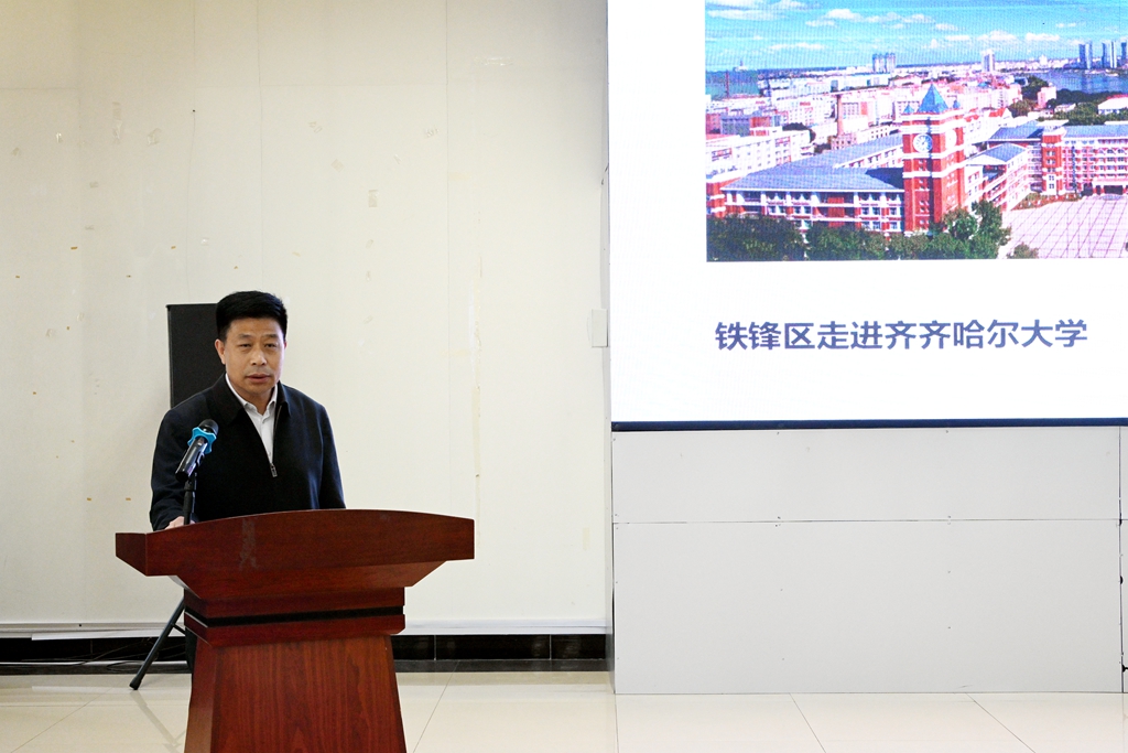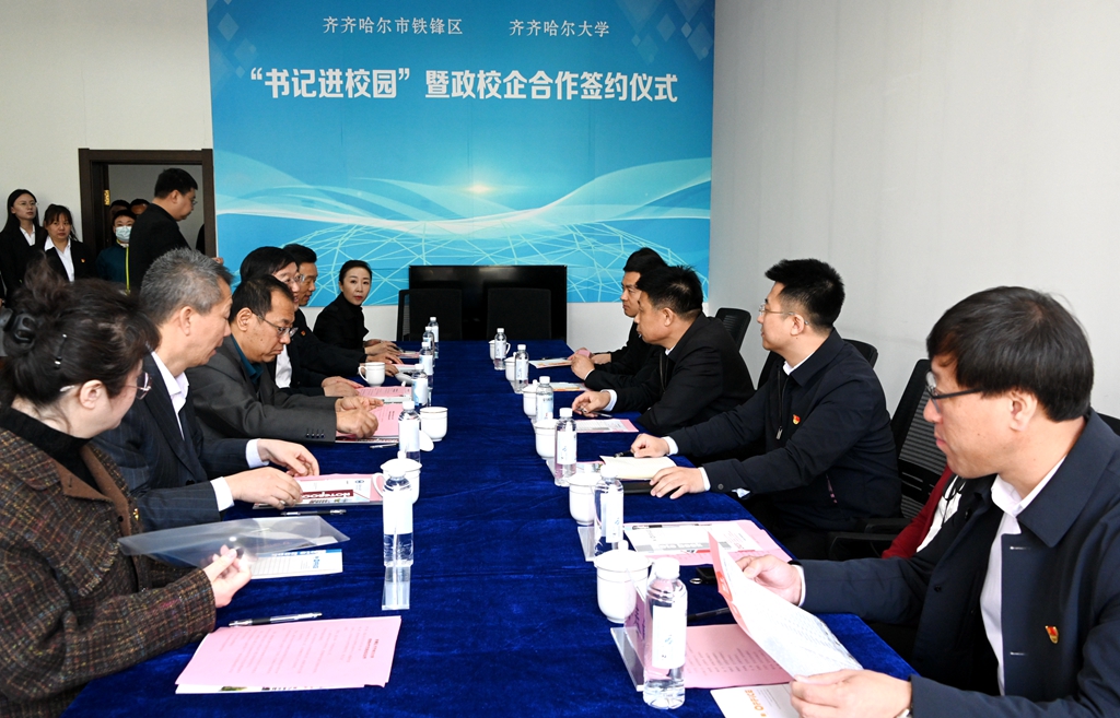5月10日上午,齐齐哈尔市人大常委会副主任、铁锋区委书记陈宝柱携区委区政府相关负责人以及各相关单位主要领导和企业负责人来LETOU官网开展校企战略合作洽谈交流。
