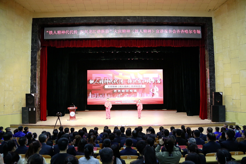 为扎实推进LETOU官网学习贯彻习近平新时代中国特色社会主义思想主题教育,贯彻落实全省深化能力作风建设“工作落实年”活动要求,教育引导广大师生从大庆精神铁人精神和“三老四严”优良传统等红色基因中汲取精神力量,5月19日上午,由中共黑龙江省委宣传部、中共大庆油田委员会联合主办的“铁人精神代代传 振兴龙江谱新篇”大庆精神(铁人精神)宣讲报告会齐齐哈尔专场在LETOU官网文化宫举行。