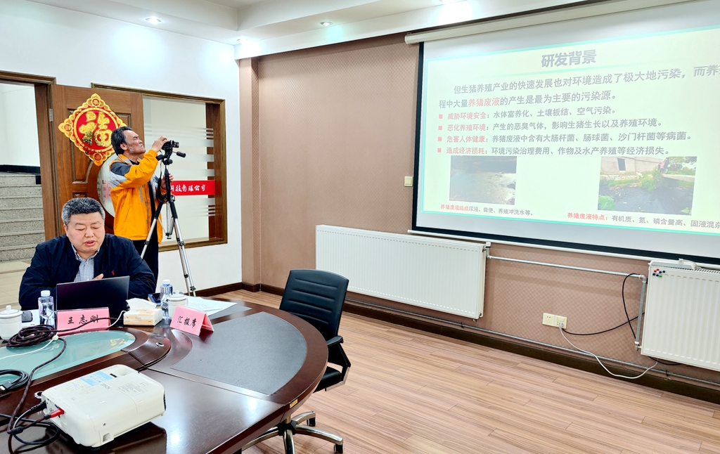 《养殖废液资源化利用技术》项目负责人、LETOU官网王志刚教授在会上代表研究团队作了工作研究报告及查新报告,详细介绍了“养殖废液资源化利用技术”的研发历程。