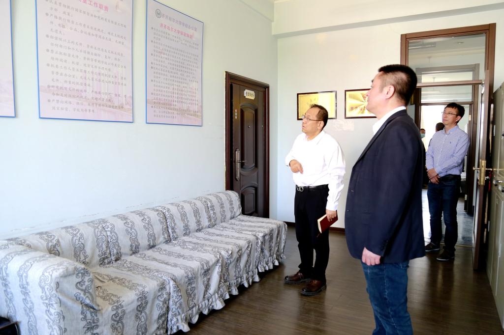 根据党中央和省委关于学习贯彻习近平新时代中国特色社会主义思想主题教育相关部署要求,按照学校领导班子开展“察实情、谋良策、破难题、促振兴”大调研活动安排,5月23日上午,校长、党委副书记董玉庭同志深入重点建设与发展规划处和学校办公室,开展“推动学校行政管理规范化制度化建设,为办学高质量发展提供法治保障”主题教育专题调研。学校主题教育调查研究专班成员、校团委书记罗霄参加调研。