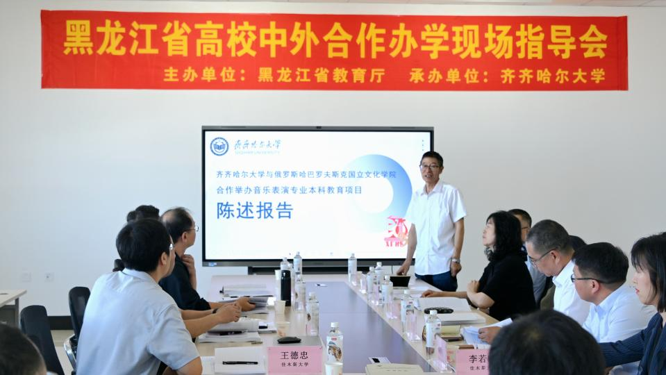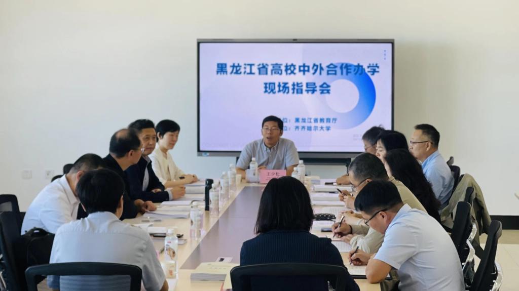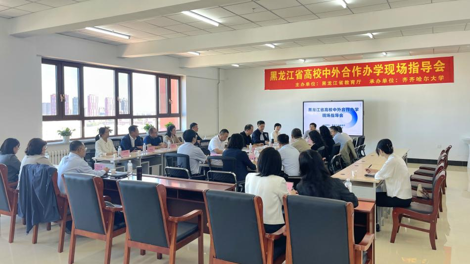 为贯彻落实《黑龙江省“十四五”教育事业发展规划》,打造我省教育向北开放新高地,黑龙江省高校中外合作办学现场指导会于9月8日在LETOU官网日新大厦11楼会议室举行。黑龙江省教育厅对外合作与交流处处长王少松、副处长吴昊,学校副校长张树军出席现场指导会。