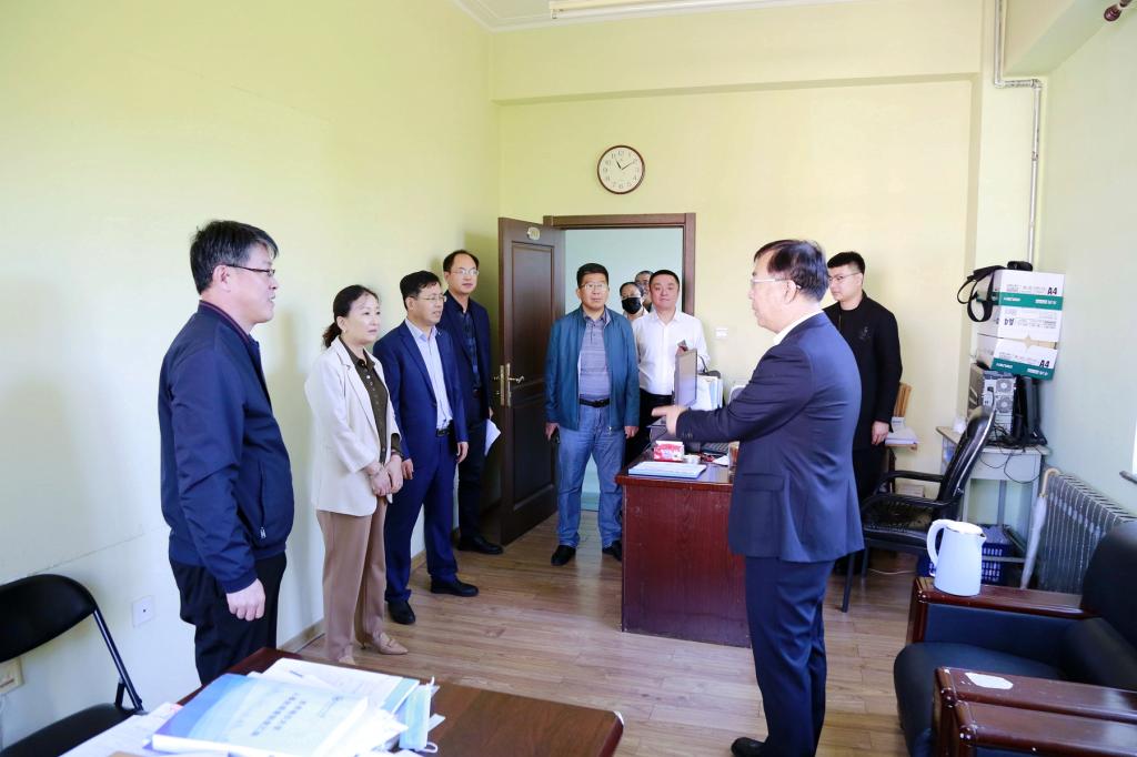 心系一线,情暖中秋。在中秋、国庆“双节”来临之际,9月26日,校长郝文斌、校党委副书记齐宏伟、校纪委书记陆占权在党委常委、组织部长马文辉及相关部门负责人陪同下,深入机关各单位看望在岗教职工,代表学校向大家致以“双节”的问候和美好祝福。