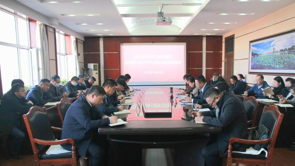 为深入学习贯彻习近平新时代中国特色社会主义思想,深刻领会中央宣传部、中央组织部联合印发的《关于进一步提高党委(党组)理论学习中心组学习质量的意见》精神和全国宣传思想文化工作会议精神,总结交流经验,分析现实问题,研究部署下一步工作,按照学校党委相关工作安排,10月12日上午,学校在办公楼504会议室召开二级党组织党委理论学习中心组学习经验交流会。会议由党委常委、宣传部部长王晓梅主持,校党委副书记齐宏伟出席会议并讲话。各二级党组织书记和党委宣传部相关同志参加交流会。