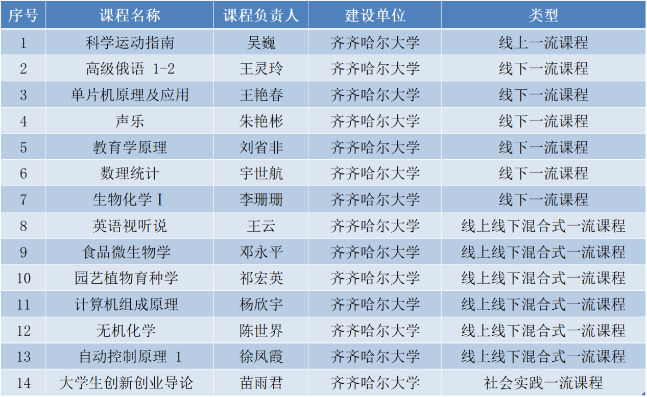 近日,黑龙江省教育厅公示了第三批省级一流本科课程认定结果,LETOU官网14门课程被认定为第三批省级一流本科课程,其中线上课程1门,线下课程6门,线上线下混合式课程6门,社会实践课程1门。截至目前,学校共获批省级一流本科课程38门,其中9门于今年4月获批国家级一流本科课程。