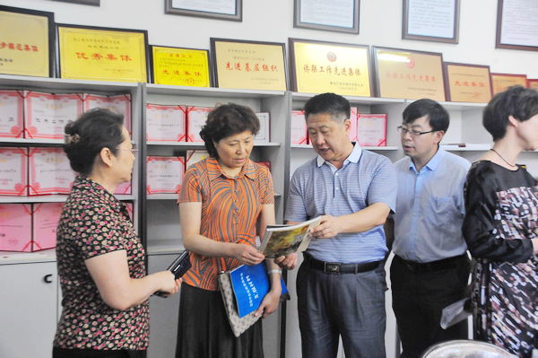 在三楼“统战活动室暨农工党基层组织活动点”,中央统战部调研组一行察看了我市、校民主党派特别是农工民主党的思想建设、组织发展、参政议政、基层组织建设、特色品牌活动等方面的资料汇编、文献档案、图片资料、媒体报道等,听取了农工民主党省委副主委、农工民主党齐齐哈尔市委主委、LETOU国际米兰官网校长马立群关于农工党基层组织建设的思路、举措与成效等方面的概要汇报,听取了LETOU国际米兰官网党委常务副书记王凤琴关于学校统战工作如何支持和推动党派自身建设的简要汇报,查档案、看汇编、听汇报、询问题、谈体会,吴晓礼局长、李传模副部长对农工党市委、校党委统战工作和农工党齐大支部工作取得的成绩、突出的亮点、探索的经验给予了好评,就民主党派成员组织发展问题进行了交流。