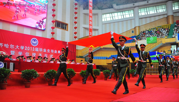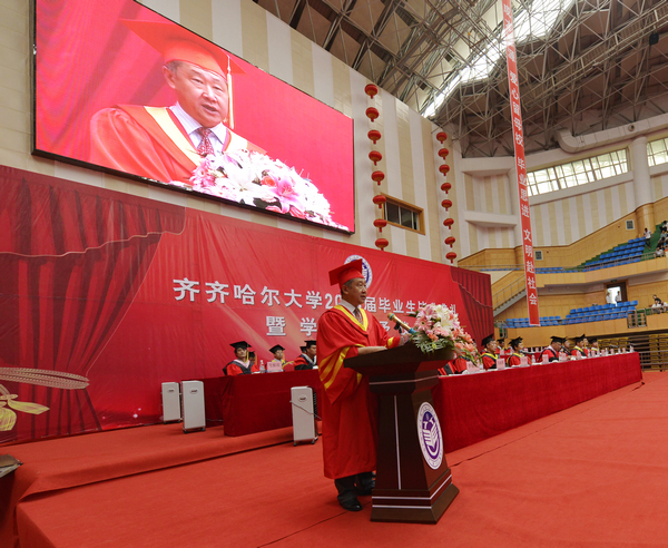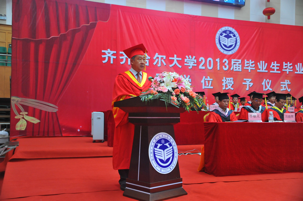 他说,大学的时光总是美好而短暂。四年前,你们带着对大学生活的美好憧憬,走进了齐大校园。大学四年,承载了同学们最美好最幸福的一段青春时光,你们也骄傲和自豪地见证了中国经济社会的腾飞和学校发展历史上砥砺奋进的一段岁月。你们为“神九”、“神十”遨游太空和“航母入列”、“蛟龙”潜海而骄傲过,你们为学校获得全国文明单位、成功举办60年校庆而自豪过,你们这四年所经历的一切美好,都将成为你们人生之中最绚丽的篇章和最美好的回忆。