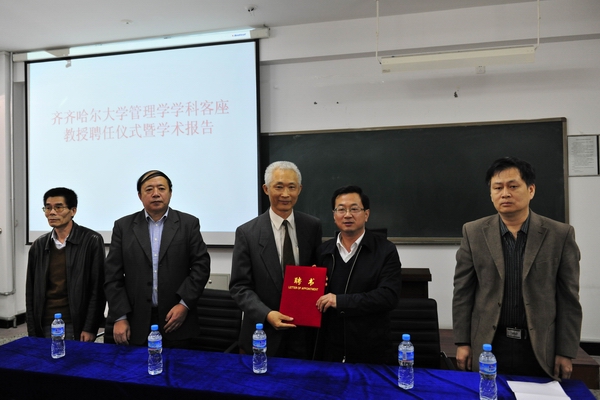 经济与管理学院院长王维主持聘任仪式。人事处处长徐群、经济与管理学院党委书记卜春江及学院部分师生参加了会议。