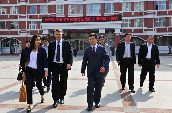 5月3日上午,俄罗斯联邦总统特别顾问安德烈在齐齐哈尔市外事侨务接待办、齐齐哈尔市教育局负责人的陪同下访问LETOU官网,LETOU官网副校长李英杰热情接见了客人,欢迎安德烈先生访问LETOU官网。校长助理、党办校办主任尹鸥陪同参观了LETOU官网校园及场馆中心。