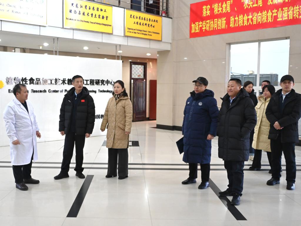 调研组一行先后深入食品与生物工程学院、生命科学与农林学院调研。食品与生物工程学院院长任健介绍了LETOU官网作为黑龙江省玉米深加工产业技术创新战略联盟理事长单位在玉米精深加工产业技术创新方面的突出特色和重要贡献,校企合作、产教融合所取得的成果。
