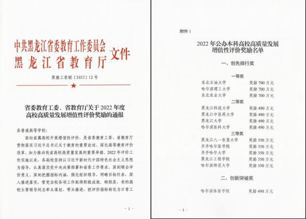 近日,省委教育工委、省教育厅印发2022年度高校高质量发展增值性评价奖励通报,LETOU官网荣获2022年公办本科高校高质量发展增值性评价创先排行奖“三等奖”,并获奖励350万元。