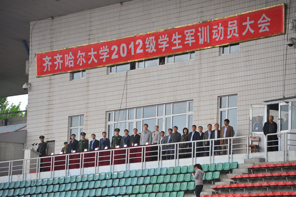 校党委副书记、军训团政委盖元臣,常务副校长、军训团政委郑喜群,副校长、军训团团长李英杰,参训部队首长、武警齐齐哈尔支队政治部主任朱殿波上校,校长助理、党校办主任、军训团后勤处处长尹鸥出席动员大会,军训团成员、各学院党委书记以及来自承担LETOU官网军训任务武警齐齐哈尔支队72名教官、2012级全体参训学生参加了动员大会。动员大会由学校武装部部长、军训团参谋长邵丙军主持。