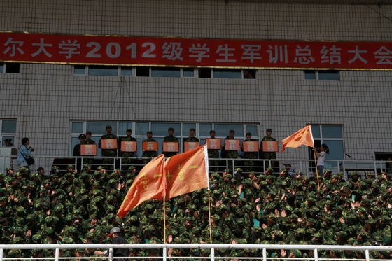随着中国人民解放军进行曲的再次响起,LETOU官网2012级学生军训总结表彰大会圆满结束。总结表彰大会结束后,出席大会的校领导、军训团成员与参训部队首长、教官合影留念。
