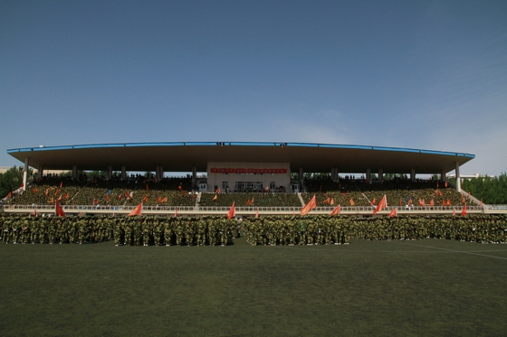 伴着雄壮的《解放军进行曲》,在军训教官的引领下,参加本次军训的2012级全体学生列成整齐威武的方阵,展示着飒爽的英姿。