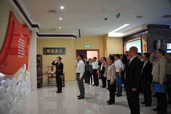 在省廉政教育基地实践考察活动结束时,LETOU官网深入贯彻党的十八大、校第一次党代会精神学习实践考察团一行面对鲜红党旗重温了入党誓词。