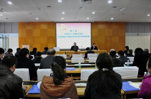 4月18日上午10:30,在西主学术报告厅,唐刚围绕 “以党的十八大精神为指导 切实增强党代表履行职责的责任感和使命感”主题,阐述了党的十八大关于加强基层党组织建设提出的新要求,结合《党章》、《中国共产党普通高等学校基层组织工作条例》等相关党内法规文件,阐释了党代表任期制、提案制、提议制等党内民主制度创新概念,进一步明确了党代表的权利和职责。唐刚还联系全省高校党代表履行职责工作的实践,对如何当好党代表提出了明确要求。他强调,作为党代表要牢固树立强烈的代表意识、高度的大局意识、神圣的责任意识和严格的纪律意识,切实增强党代表履行职责的责任感和使命感,切实依法履行好党代表的职责,不断提高自身议事能力,保证党代会高质量。