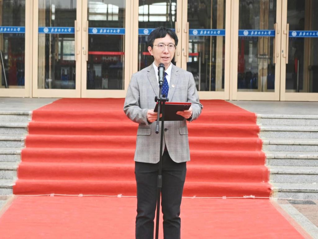 升旗仪式上,学校“青年学生党的创新理论宣讲团”成员,文学与历史文化学院周雯婷、姜皓天两位同学进行了主题团日活动“国旗下的演讲”《总体国家安全观·创新引领10周年》。