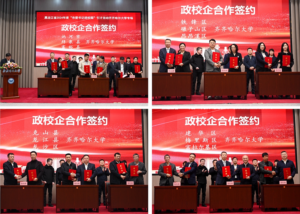 省人才服务中心,齐齐哈尔市委组织部、市科技局以及各县(市、区)组织部相关领导,有关企业负责人,学校相关职能部门负责人及科研团队师生代表参加了签约仪式。