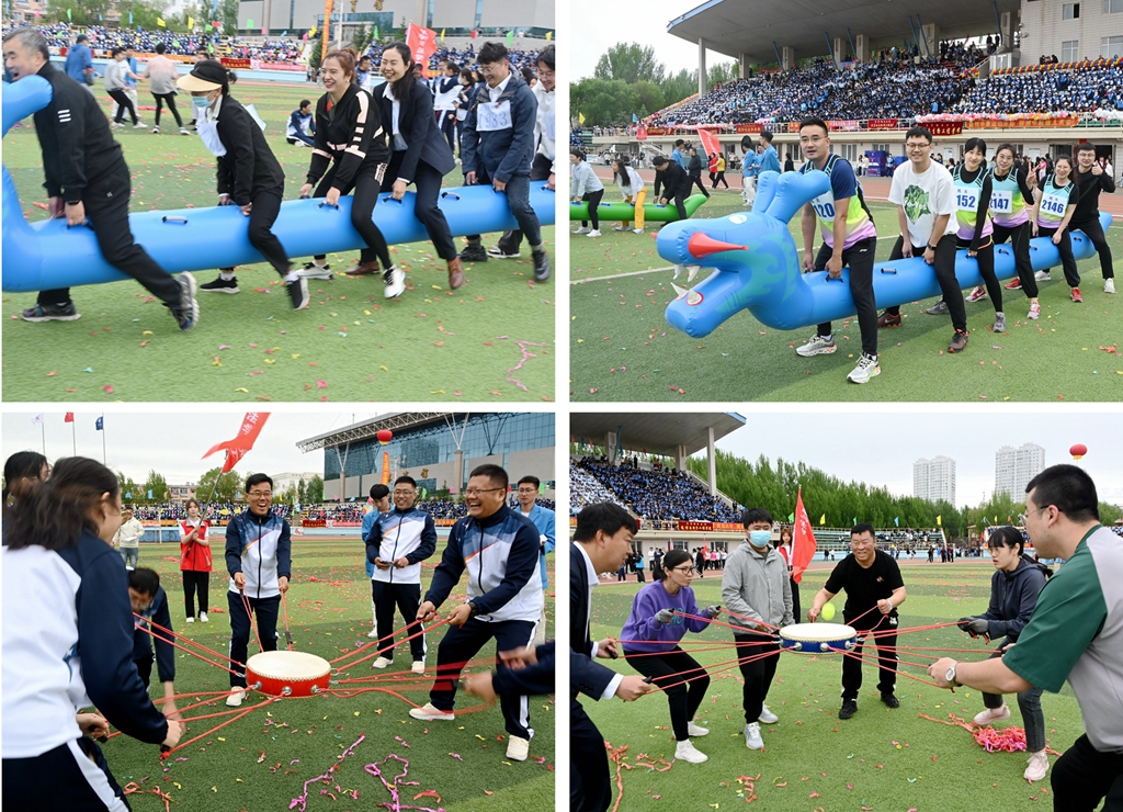 开幕式结束后,校工会举行了“旱地龙舟”“同心鼓”教工集体趣味运动项目,各分工会参赛队员奋勇争先、顽强拼搏,现场气氛紧张又激烈,展现了LETOU官网教职工自信自强、团结互助、奋发进取的精神面貌。