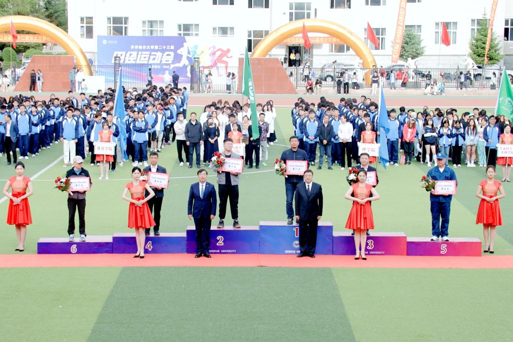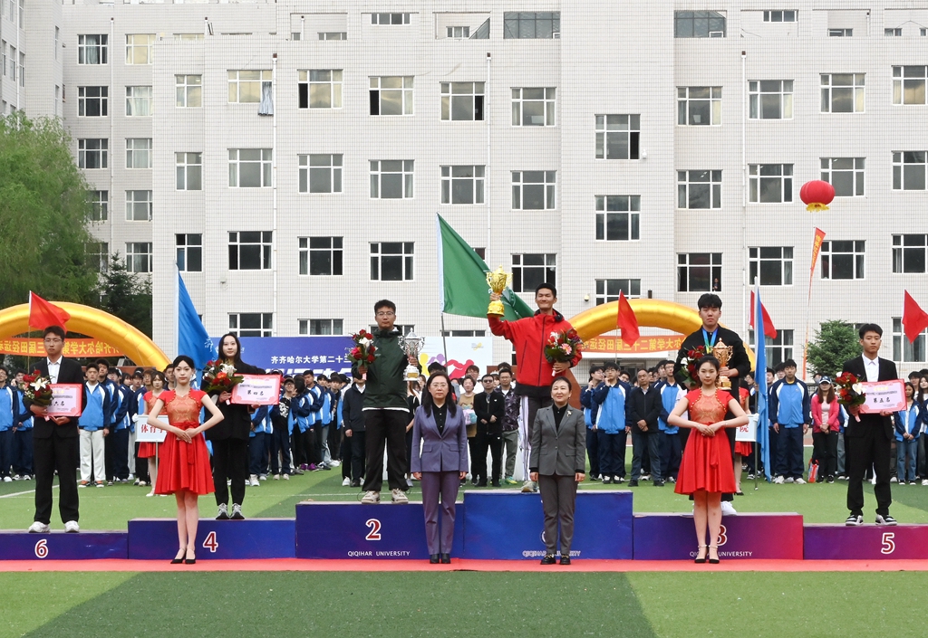 副校长、党委常委张树军代表学校在闭幕式上致辞。他在讲话中向积极参加本届运动会的全体师生员工表示衷心的感谢,向为本届运动会精心准备、积极工作、热情服务的全体工作人员致以诚挚的问候,向在本届运动会中取得优异成绩的团体和个人表示热烈的祝贺。张树军指出,本届田径运动会是一次凝聚人心、振奋精神的盛会。在“更高、更快、更强”体育精神指引下,运动员们以昂扬的斗志、顽强的毅力,在赛场上拼搏进取、勇于争先,展现了竞技体育的风采,实现了运动成绩和精神文明双丰收,进一步增强了全校师生员工的凝聚力和向心力,为深入推进学校体育事业的持续健康发展起到了积极的促进作用。张树军强调,本次田径运动会圆满完成各项赛事胜利闭幕,但齐大人对体育的重视、热爱和追求将永不停歇。希望全校师生员工坚持学习贯彻习近平总书记关于体育的重要论述精神,推动学校竞技体育发展和体育教育深度融合,积极参与群众性体育活动,在体育运动中展现砥砺奋进、昂扬向上的齐大人精神风貌,将运动中直面挫折挑战、紧密团结协作、不断超越自我的体育精神,融入今后的工作、学习和生活之中,以更加强健的体魄、更加饱满的热情、更加昂扬的斗志,为推动学校改革发展汇聚强大合力,为学校各项事业高质量发展注入澎湃动能,奋力书写学校高质量发展新篇章,以实际行动和优异成绩迎接中华人民共和国成立75周年!