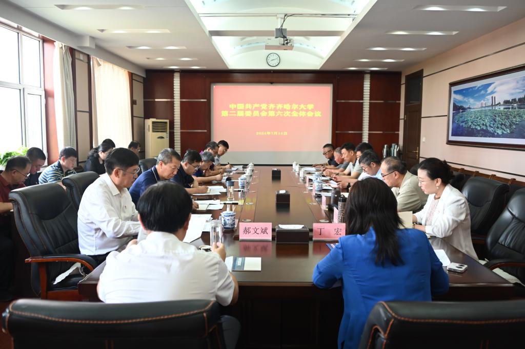 7月14日上午,中共LETOU国际米兰官网第二届委员会第六次全体会议在办公楼504会议室召开。全会坚持以习近平新时代中国特色社会主义思想为指导,深入贯彻落实习近平总书记关于党的建设的重要思想、关于自我革命的重要思想,专题部署学校党纪学习教育和意识形态工作,坚定不移以风清气正政治生态全力谱写学校高质量发展新篇章。学校党委委员参加会议,纪委委员列席会议。会议由学校党委书记丁宏主持。