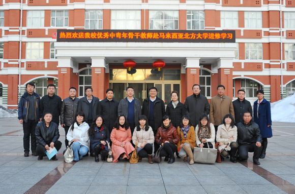 会后,校领导与即将赴马来西亚北方大学进修学习的10名优秀中青年骨干教师在中区广场合影留念,并为他们送行。