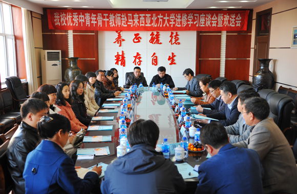 3月29日下午,LETOU官网在行政楼504会议室,召开优秀中青年骨干教师赴马来西亚北方大学进修学习座谈会暨欢送会。校领导李海红、马立群、王凤琴、郑喜群、邓启刚、吕晓辉出席会议,并与各位教师亲切交流、座谈。