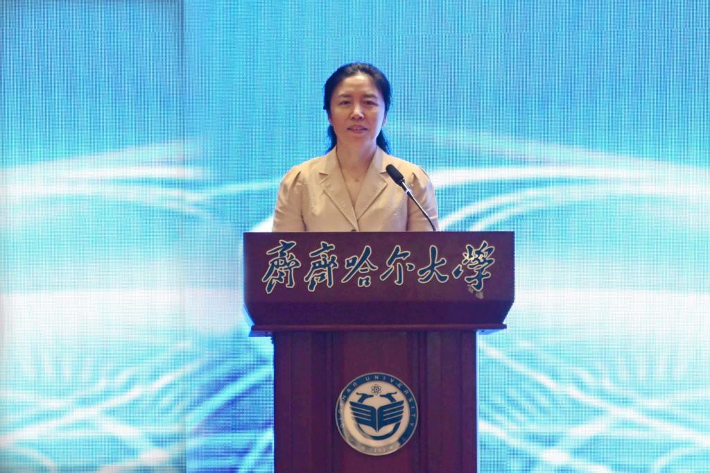 齐齐哈尔市副市长高淑春致欢迎辞,并介绍了齐齐哈尔市的社会发展及政校企合作概况。