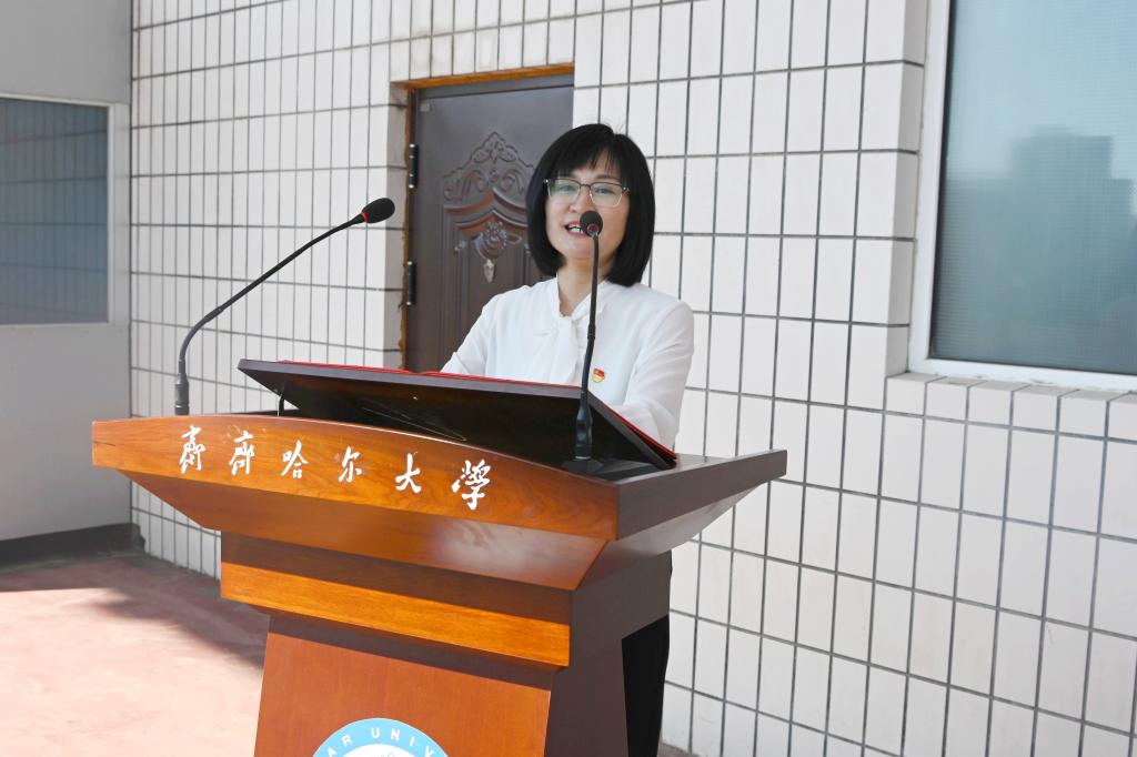 教师代表、黑龙江省青年教学名师、齐齐哈尔市第十届青年五四奖章获得者、生命科学与农林学院副院长、李珊珊教授发言。她代表全体教师欢迎新生加入齐大大家庭,她表示,同学们对美好大学生活的向往,就是老师们的期望,全体教师将倾听同学们的声音,用心用情陪伴同学们成长。她希望大家坚定奋斗目标、刻苦学习钻研、矢志科技报国,努力成为齐大精神的传承者,为推进学校有特色高水平应用型综合性大学建设,添砖加瓦、增光添彩。
