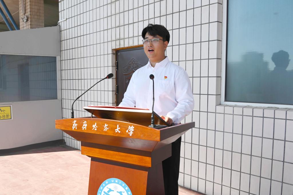 在校生代表、校学生会执行主席、哲学与法学学院哲学211班孔繁硕同学发言。他结合在齐大学习和生活经历,与2024级的新生分享了感悟,他真诚感谢学校老师给予的谆谆教导,感谢学校营造的浓郁学习氛围,他深深体会到了知识的魅力和个人成长的快乐。