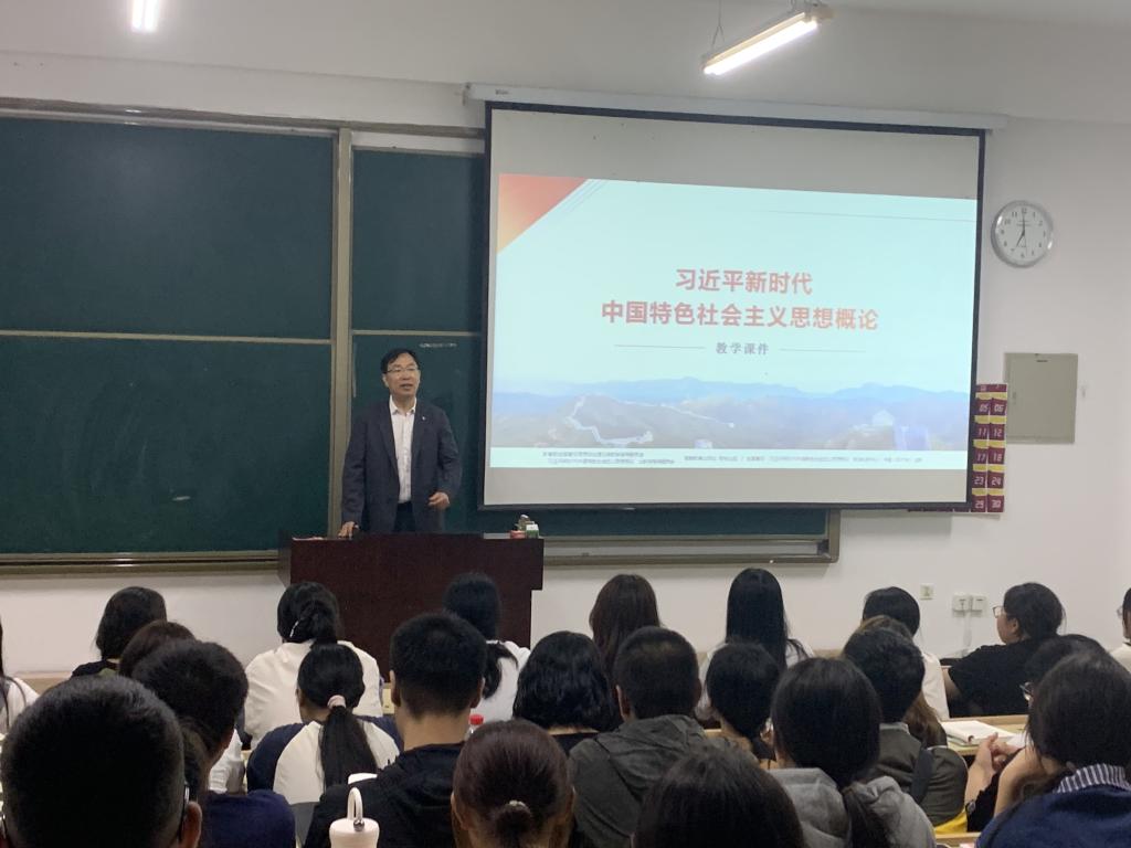 9月9日,校长郝文斌教授佩戴校徽着正装,携带教学材料早早来到教室,亲自调试教学设备,核对学生数据,了解学生学业背景。在授课过程中,全面系统梳理习近平新时代中国特色社会主义思想的体系构成,内容上着重讲述了两个大局之下我国现阶段的基本国情、主要矛盾,环节上从国际关系展开分析,阐释东西方关系,讲解了刚刚召开的中非合作论坛时政等内容。郝文斌结合党的二十届三中全会精神,深度解读了以中国式现代化全面推进强国建设、民族复兴伟业的宏伟蓝图,勉励齐大学子要挺膺担当。郝文斌全情投入并适时走下讲台走进学生,近距离与学生进行交流互动。课间与学生进行深入恳谈,关切地询问学生学习生活情况,了解学生未来学业规划,鼓励学生养成勤奋求实的精神,加强党的创新理论武装,在学思践悟中增强新时代青年大学生的使命与担当。
