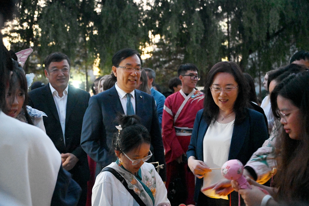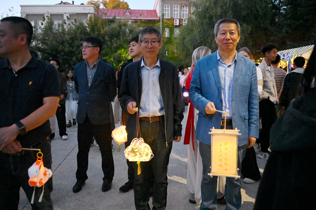 为学习宣传贯彻习近平文化思想和习近平总书记在全国教育大会上的重要讲话精神,贯彻落实党的二十大关于新时代文化建设的决策部署,坚持培育和践行社会主义核心价值观,引领广大青年传承和弘扬中华优秀传统文化,打牢深厚持久的文化自信,助力建设中国式现代化,9月17日晚,学校在东区树荫长廊举办了花灯华服游园会。校领导丁宏、郝文斌、张文治、丛喜权、张树军及相关职能部门负责人来到游园活动现场,与师生共同欢度中秋佳节。