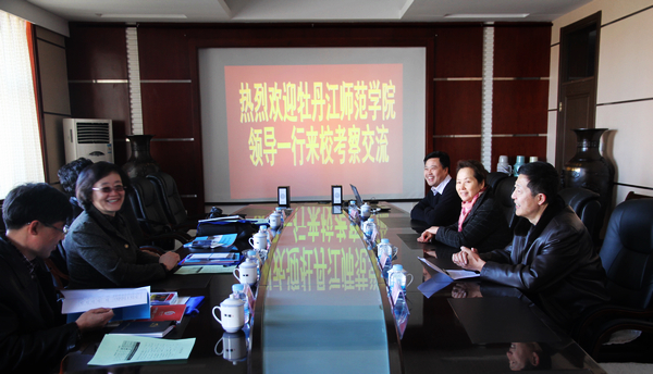 牡丹江师范学院调研组一行参观考察了校史馆以及“环湖大学”的校园文化景观。校领导李海红、马立群、王凤琴、盖元臣、郑喜群等同考察团成员进行了亲切交流。