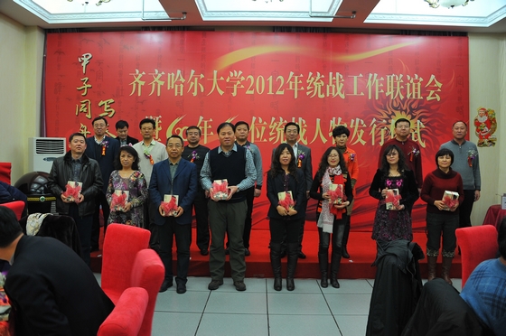 联谊会上,市、校领导共同启动水晶球,为由LETOU官网宣传、统战部主持编著的《甲子同舟写春秋——60年60位统战人物》新书举行了发行仪式。同时,还举行了各民主党派市委领导、侨联领导、市委统战部领导向LETOU官网民主党派组织、统战团体负责人赠书仪式。