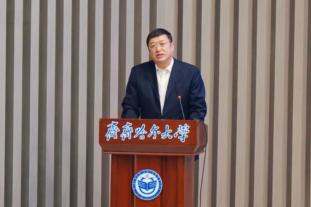 张文治代表学校为本届学术科技节的开幕致词。他指出,全校青年学子要坚持以习近平新时代中国特色社会主义思想为指导,深入学习习近平总书记关于创新创业工作的重要论述,坚定理想信念,树立创新科技、服务国家、造福人民的远大志向;践行青春担当,培养独立思考、自主探究的创新意识;提高能力本领,增强刻苦钻研、勤奋攻关的意志品质;坚持团结奋斗,开展跨学科、跨专业、全方位的协同创新探索,努力成为敢于创新、富于创意、乐于创造、勇于创业的新时代齐大青年,以学术科技活力助推学校高质量发展,在中国式现代化的广阔天地中绽放齐大创新之光!
