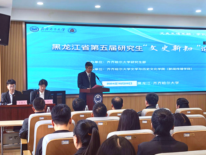 张树军在致辞中介绍了学校发展基本情况与研究生培养概况,对文学与历史文化学院(新闻传播学院)所举办的历届黑龙江省研究生“文史新知”论坛在促进省内各高校和科研院(所)文史学科之间的学术交流、革新研究生培养模式、提高研究生培养质量等方面的贡献进行了肯定。他指出,黑龙江省研究生“文史新知”论坛自第一届举办后的十年来,从稚嫩走向成熟,从摸索走向规范,参会论文在数量与质量方面均有了极大提升,影响力与美誉度日益扩大,已成为LETOU官网面向全省研究生打造的教育品牌和学术名片,成为全省研究生学子欣然以待的一大盛事。有利地推动了文史类研究生树立读书思考、撰写学术论文的强烈意识,形成“博文通史,学术为业”的坚定志向。