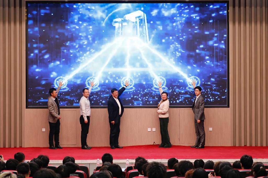 罗亮和计算机与控制工程学院院长张剑飞分别致辞,张子明、黄力为在场师生进行华为ICT大赛路演讲座。