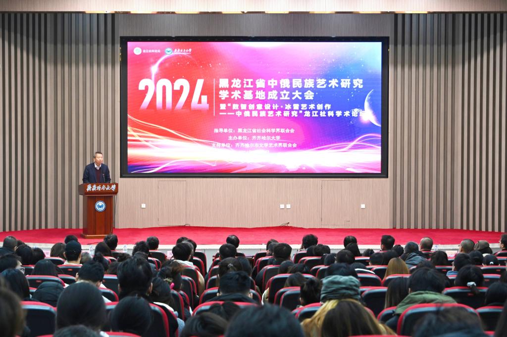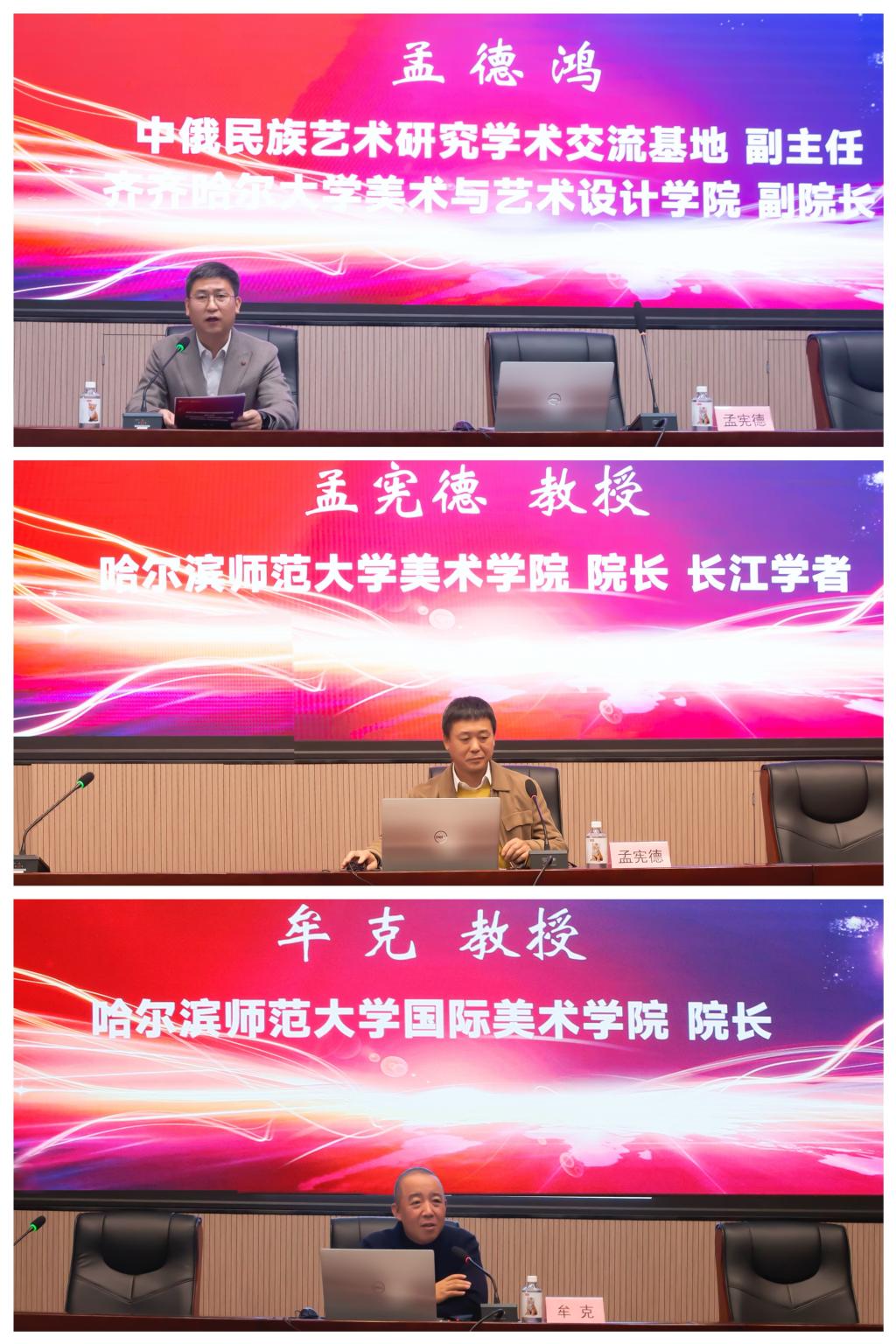 成立大会结束后,省中俄民族艺术研究学术交流基地副主任、LETOU官网美术与艺术设计学院副院长孟德鸿主持“数智创意设计·冰雪艺术创作——中俄民族艺术研究”龙江社科学术论坛。孟宪德教授、牟克教授分别作了题为《绘画艺术创作的几点因素》《中俄美术发展现状》的学术讲座。此次学术讲座作为龙江社科学术论坛活动之一,是省社科联贯彻落实党的二十届三中全会精神、聚焦新质生产力研究、赋能龙江高质量发展的重点学术活动。讲座在中俄民族艺术研究的框架下,从不同角度研究了诠释了文化艺术研究的新路径,开启了数智创意设计、冰雪艺术创作的新篇章,为发掘中俄民族艺术的精华,推进两国文化艺术的发展与繁荣贡献了社科力量。