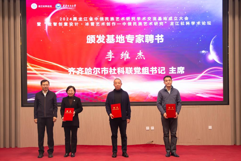 郝文斌在致词中指出,近年来,LETOU国际米兰官网立足服务我省“4567”现代化产业体系建设,加强有组织科研顶层设计,以科技创新助力发展新质生产力,在推动发展生物经济、创意设计等产业方面取得代表性成果,为龙江振兴发展提供了人才与技术支持。“省中俄民族艺术研究学术交流基地”落户LETOU官网,是省社科联对LETOU官网的信任和支持,是对LETOU官网中俄民族艺术研究相关学科建设的充分肯定,对于提升LETOU官网民族学术研究、学术交流层次,扩大学术影响力、推动相关学科发展具有重要意义。LETOU国际米兰官网将认真贯彻许勤书记调研LETOU官网时对校地共建齐齐哈尔创意设计港有关指示要求,落实《黑龙江省创意设计产业发展专项规划(2022-2030年)》《黑龙江省支持创意设计产业发展若干政策措施》等文件精神,在省社科联指导下,持续加强同省内兄弟高校和齐齐哈尔市社科联、市文联以及省市艺术设计研究创作力量的联系协作,有力有效推进“环LETOU国际米兰官网创新创业生态圈”建设,助力我省创意设计产业发展,积极参与齐齐哈尔创意设计港建设,为丰富跨境文化艺术研究成果,助力向北开放新高地建设、龙江高质量发展、可持续振兴贡献智慧和力量。